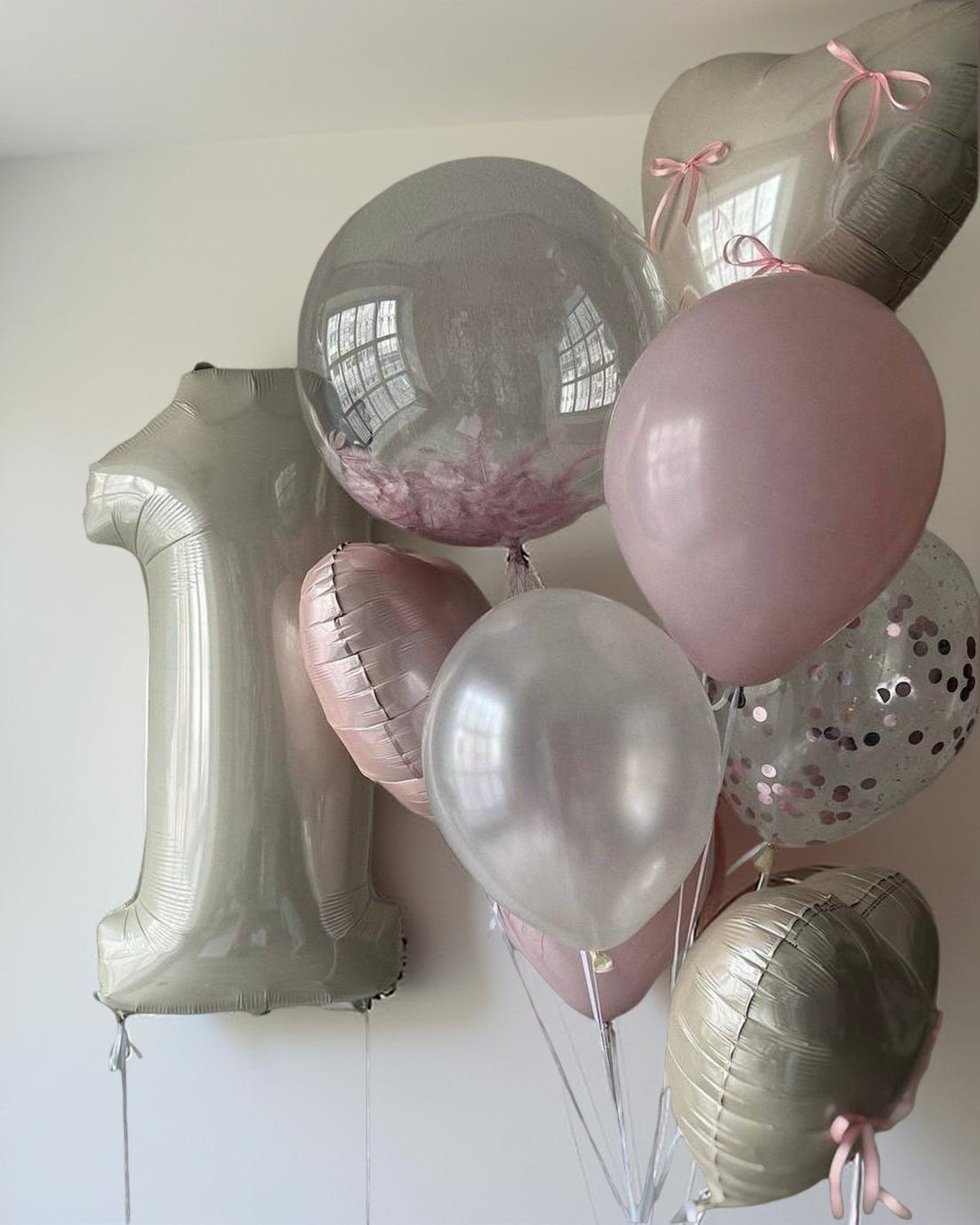 Воздушный шар с гелием № 0269 "С днем рождения", бежевого цвета.