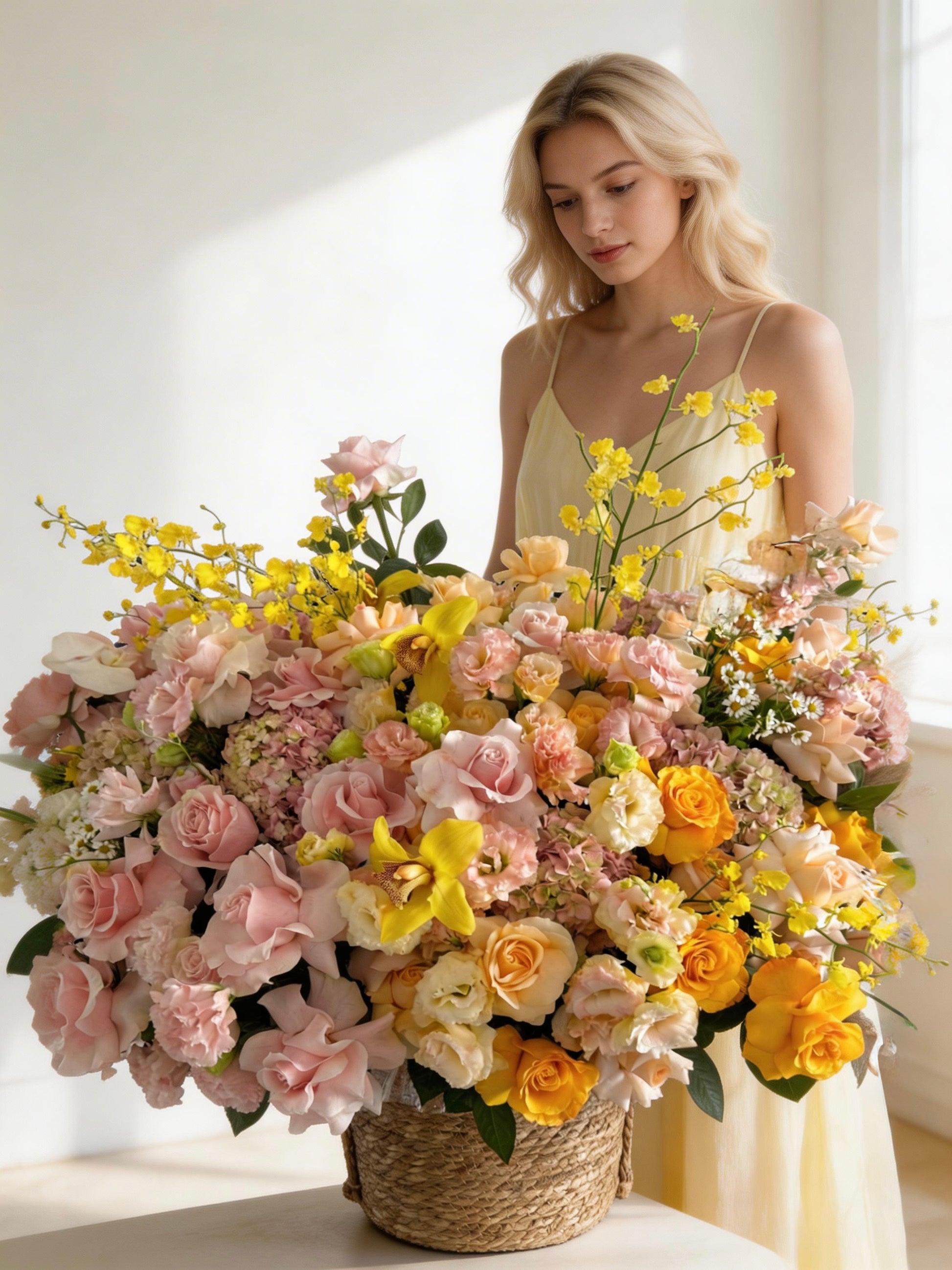 Желтая цветочная корзина «Ван Гог»